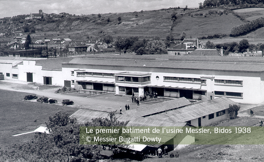 En juin 1938 pour augmenter la production d’atterrisseur la décision est prise de décentralisé, le choix se porte sur le petit village de Bidos, au pied des Pyrénées. La construction d’un site de 6400m² a nécessité un investissement de 3 millions de franc. Il offre deux atouts non négligeables. D’une part, sa proximité avec le chemin de fer qui est indispensable à l’approvisionnement du site en machines et en matières premières. Les Machines pouvaient ainsi arriver à cadence régulière, les tours parallèles, des fraiseuses, des tours à décolleter et quelques rectifieuses. Et d’autre part, son éloignement des frontières allemandes. Après quelques mois de travaux, l’usine démarre son activité en octobre 1938 avec une dizaine de tourneur, deux fraiseurs et deux rectifieur. L’année d’après, elle emploiera 200 salariés et produira des pièces détachées qui sont ensuite assemblées à Montrouge. A cette époque, Messier produit entre 25 à 30 trains par mois, et équipe 85% de l’aviation française.