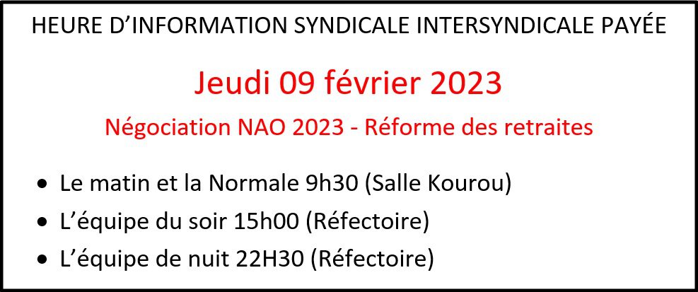La Direction Générale souhaite conclure cette négociation NAO 2023 au plus vite, avec une échéance à la date du 14 février 2023.