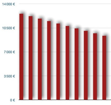 Pour une augmentation de 10€/mois bruts à un salarié de 40 ans l’augmentation représentera 2880€* sur le reste de sa carrière. Le cumul perçu entre sa carrière et sa retraite sera de 4194€** (3413€ net***).